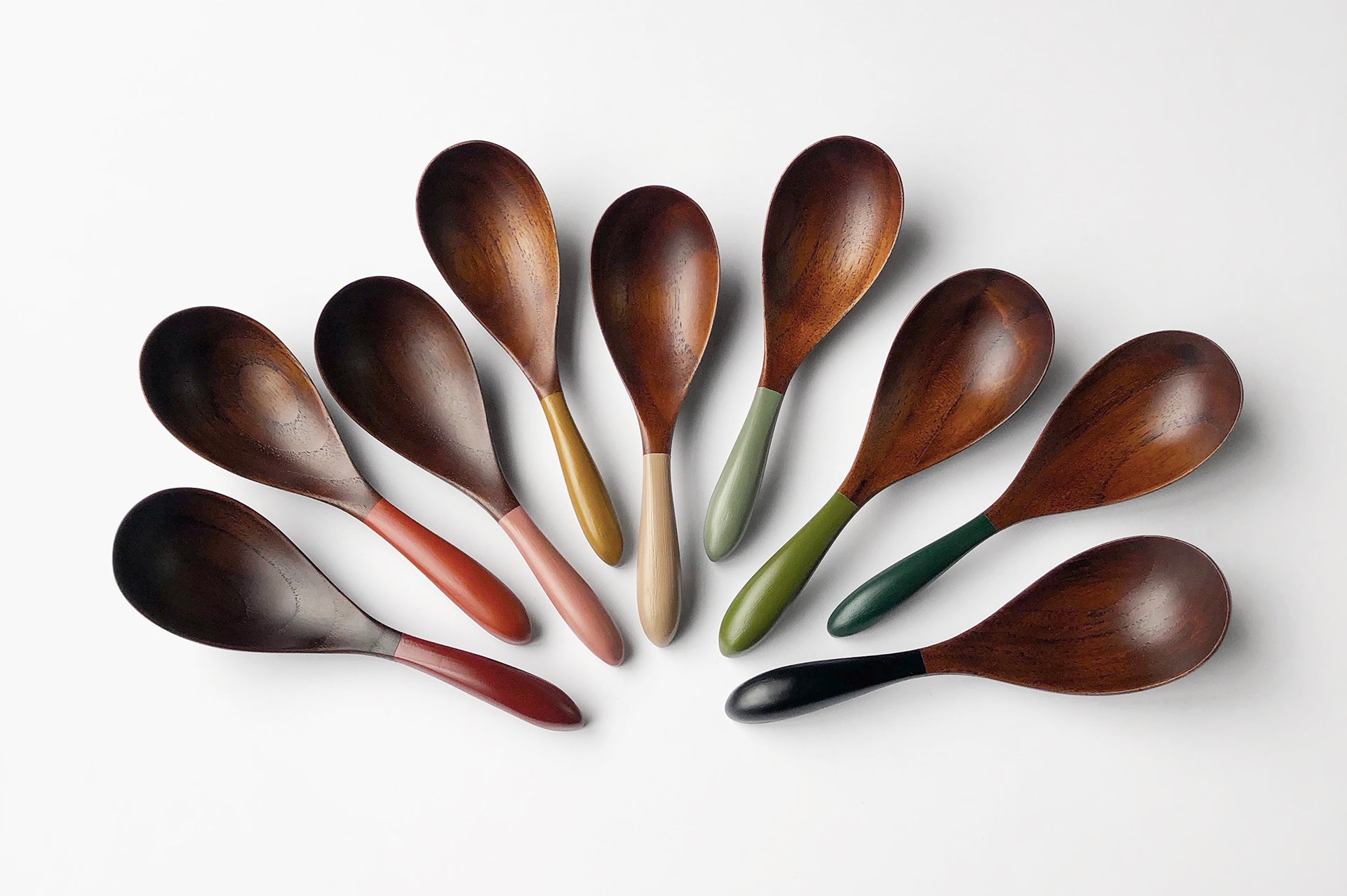 凛とした佇まいの中に、香川漆器の手仕事の温もりを宿す漆スプーン。天然木の滑らかな口あたりと軽やかな使い心地は、