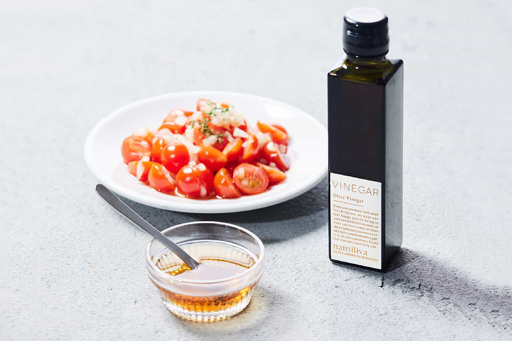 namilivaのオリーブビネガーは、無添加にこだわり、抗酸化作用が強いポリフェノールを豊富に含んでいます。そのマイルドでありながらフルーティーな味わいは、ヘルシー調味料の新定番です。牛肉マリネやムニエル、パスタ、ちらし寿司、炭酸割りジュース、サラダにかけるドレッシングなど、さまざまな料理にオススメです。