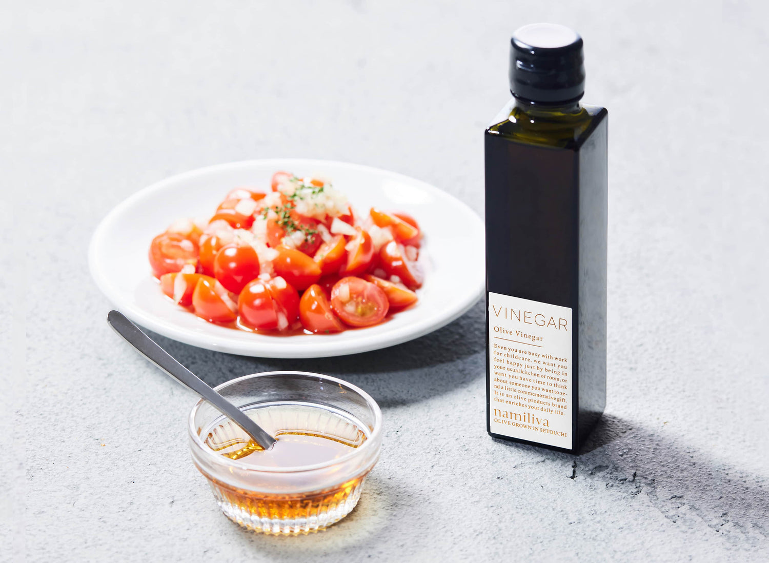 namilivaのオリーブビネガーは、無添加にこだわり、抗酸化作用が強いポリフェノールを豊富に含んでいます。そのマイルドでありながらフルーティーな味わいは、ヘルシー調味料の新定番です。牛肉マリネやムニエル、パスタ、ちらし寿司、炭酸割りジュース、サラダにかけるドレッシングなど、さまざまな料理にオススメです。